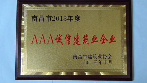 2013年10月我司獲得“南昌市2013年度AAA誠信建筑業(yè)企業(yè)”的榮譽稱號。