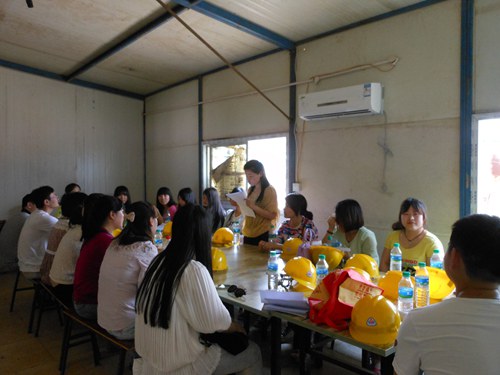 會議最后,項目部青年員工黃玄為大家傳授建筑工地安全常識,勞動防護(hù)用品安全帽、安全帶的使用及施工現(xiàn)場安全須知,使全體青年員工明白在強(qiáng)調(diào)質(zhì)量第一、工期第一的同時,還必須一直強(qiáng)調(diào)安全第一。