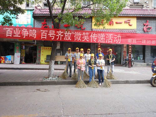 為紀(jì)念青年文明號(hào)活動(dòng)開展二十周年,根據(jù)洪青聯(lián)發(fā)(2014)14號(hào)《關(guān)于開展“百業(yè)爭(zhēng)鳴,百號(hào)齊放”青年文明號(hào)20周年微笑傳遞活動(dòng)的通知》的文件精神要求,引導(dǎo)青年團(tuán)員積極投身構(gòu)建和諧社區(qū),大力弘揚(yáng)志愿服務(wù)精神,公司團(tuán)委結(jié)合當(dāng)前我司開展的黨的群眾路線教育實(shí)踐活動(dòng)及“治臟治亂整治行動(dòng)”工作,于5月16日下午組織了10余名青年志愿者,在南昌市西湖區(qū)淘沙塘社區(qū)開展 “青清行動(dòng)”青年文明號(hào)進(jìn)社區(qū)“治臟治亂”志愿服務(wù)活動(dòng),對(duì)該社區(qū)樓道、人行道、高空的垃圾進(jìn)行了清理工作。