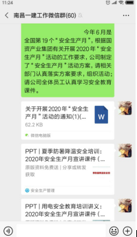 3、公司通過官方QQ群及微信群平臺,組織了一次安全教育培訓,主要學習夏季防暑降溫及用電安全教育,相關學習課件發(fā)到平臺,號召全體干部職工積極學習和了解。